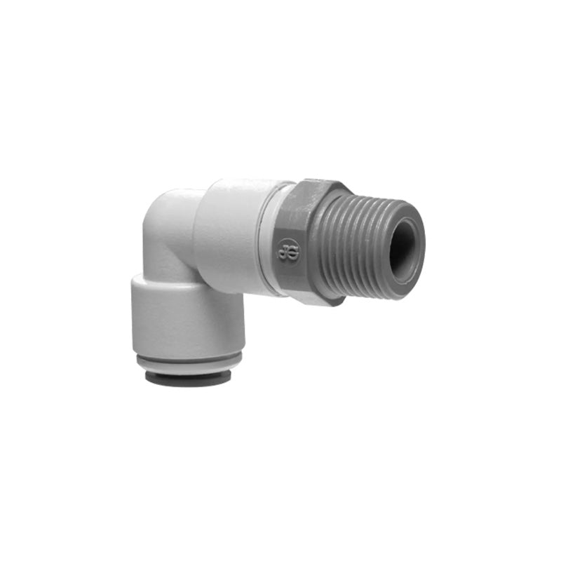 John Guest swivel elbow (BSPT thread) push-fit fitting connects metric to a FBSPT thread connection to form a 90° swivel type connection. Fast and simple to install, John Guest Air and Pneumatics creates an instant connection and airtight seal without the need for tools, hot works or sealing agents.